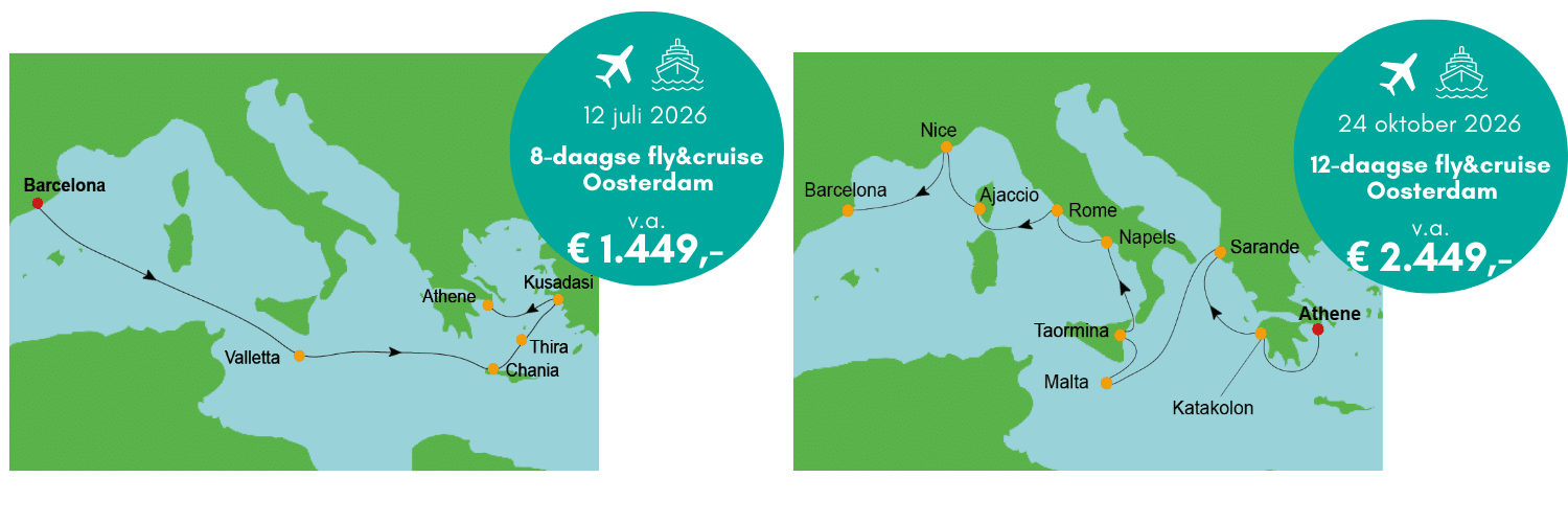 Boekt u vóór 31 december 2025 één van de deelnemende Fly & Cruise Middellandse Zee pakketreizen,