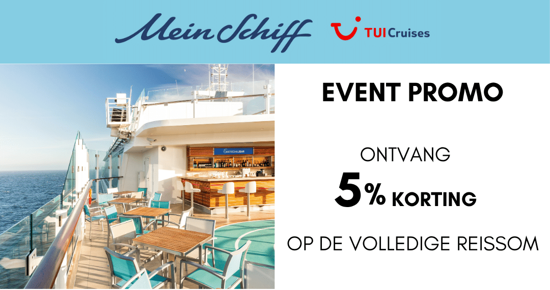 Boek nu uw cruise met Mein Schiff van TUI Cruises en profiteer van 5% korting op de volledige reissom!
