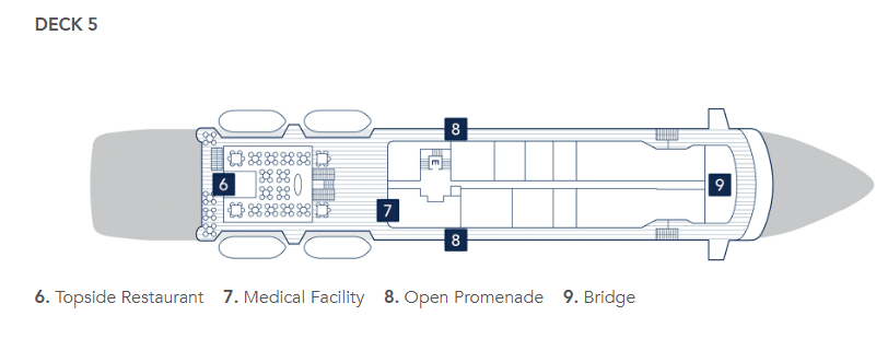 - Topside Restaurant – waar ontbijt, lunch en diner worden geserveerd, kunnen gasten genieten van elke maaltijd in dit uitzonderlijke restaurant met het prachtige uitzicht.